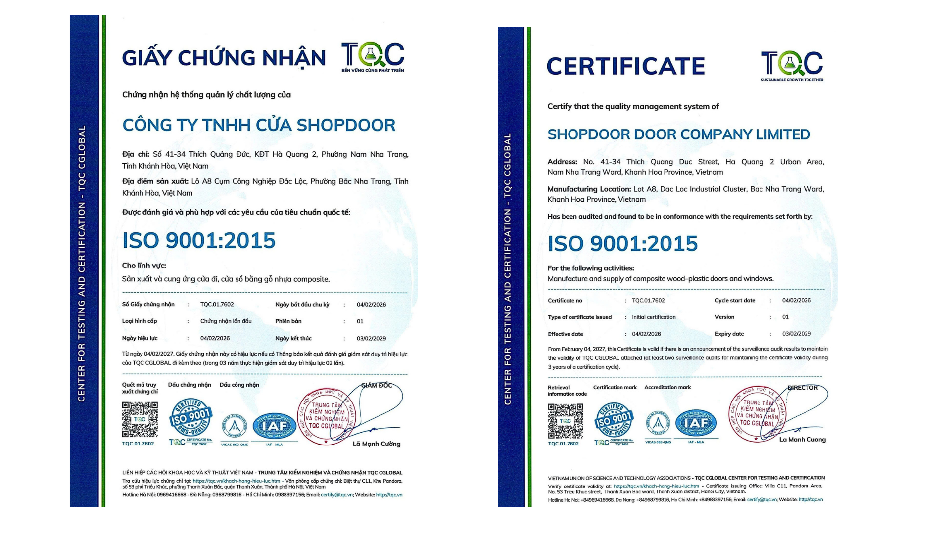Đó là lý do Shopdoor không ngừng đổi mới, cải tiến để từng sản phẩm không chỉ đẹp mà còn bền chắc, và mỗi trải nghiệm mua sắm không chỉ tốt mà còn đáng nhớ. “Cửa xanh cho mọi nhà” không chỉ là một slogan – mà là lời hứa. Shopdoor cam kết luôn là điểm bán cửa trực tiếp từ nhà máy, minh bạch, uy tín, đồng hành cùng bạn trên hành trình xây dựng tổ ấm vững chắc và hạnh phúc.