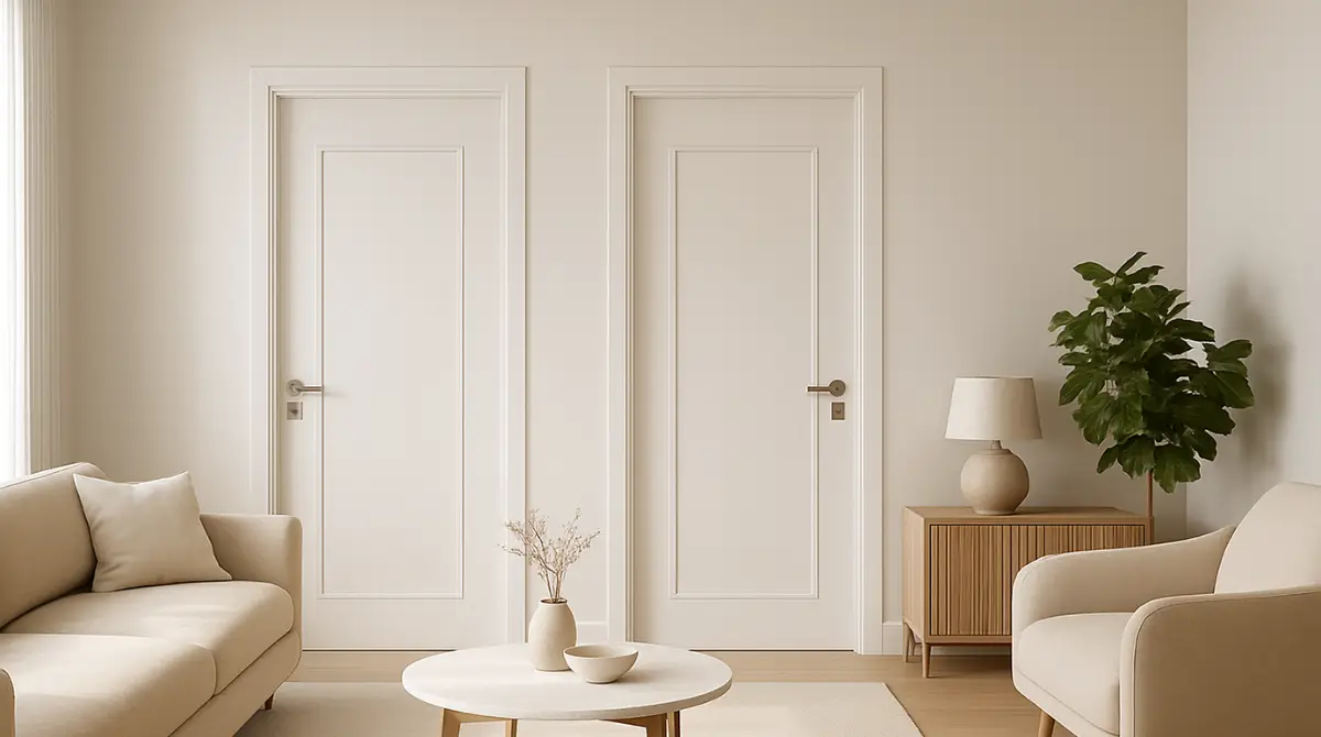 Chúng tôi luôn khuyên khách hàng chọn mẫu phẳng trơn màu trắng hoặc vân gỗ nhạt. Tránh các họa tiết phào nổi cầu kỳ sẽ gây cảm giác rối mắt và làm không gian hẹp lại. Bạn có thể tham khảo thêm các bài viết về kiến thức về cửa gỗ nhựa để có cái nhìn tổng quan hơn.